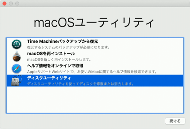 ディスクユーティリティを終了してmacOSユーティリティ画面に戻ります。